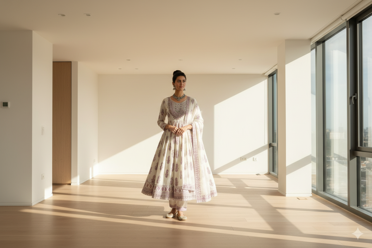 Complete 3-Piece Set – Includes embroidered kurta, matching salwar, and printed dupatta