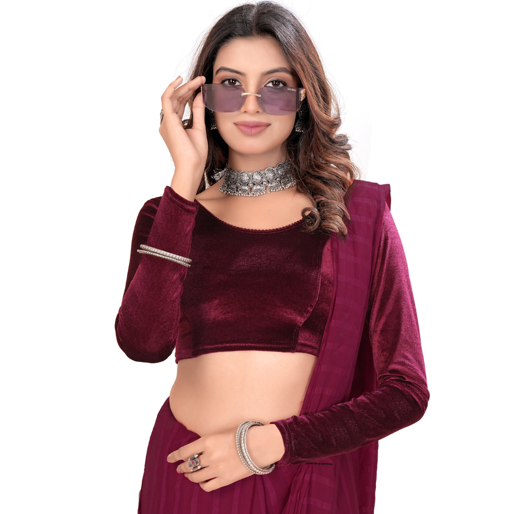 Add timeless elegance to your saree look with our Stretch Velvet Full Sleeve Blouse.
