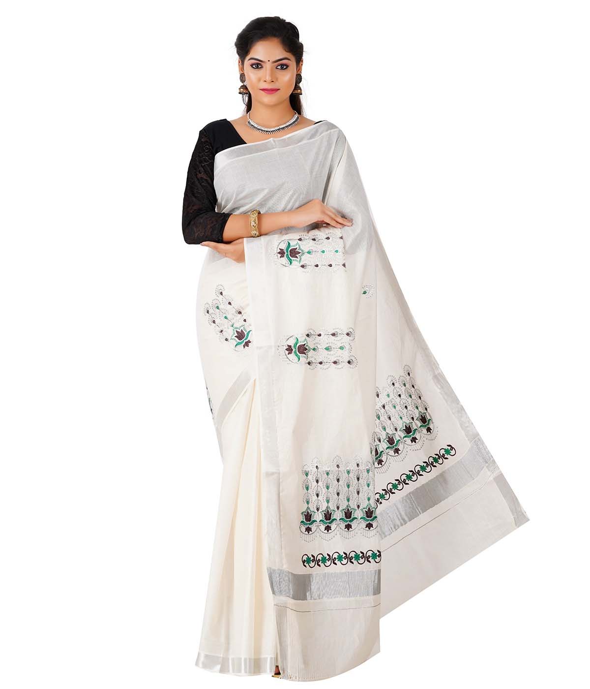 The golden Kasavu border adds a touch of grandeur, making it an ideal choice for weddings, temple visits, and festive gatherings. The lightweight and breathable cotton fabric ensures all-day comfort, making it suitable for warm climates. The saree comes with a matching blouse piece, allowing you to style it with traditional or modern accessories for a stunning look.