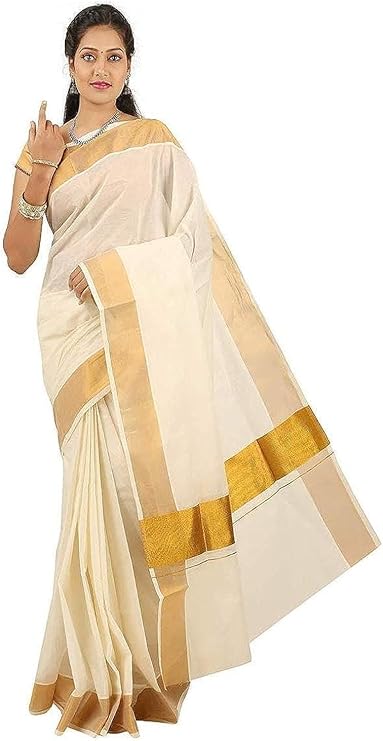 The golden Kasavu border adds a touch of grandeur, making it an ideal choice for weddings, temple visits, and festive gatherings. The lightweight and breathable cotton fabric ensures all-day comfort, making it suitable for warm climates. The saree comes with a matching blouse piece, allowing you to style it with traditional or modern accessories for a stunning look.