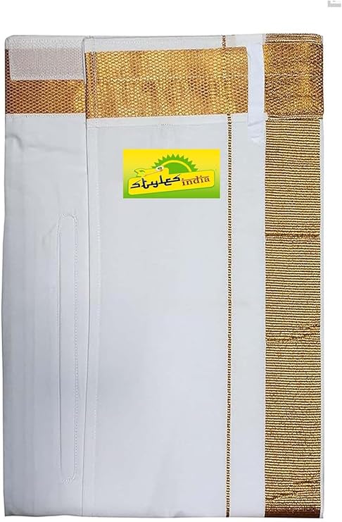 Crafted from premium-quality cotton, this breathable and lightweight dhoti ensures all-day comfort. The convenient side pocket offers added functionality, making it ideal for temple visits, weddings, rituals, cultural events, or daily traditional wear. Its soft texture and durable fabric make it easy to drape and maintain, while the gold zari border enhances its ethnic appeal.
