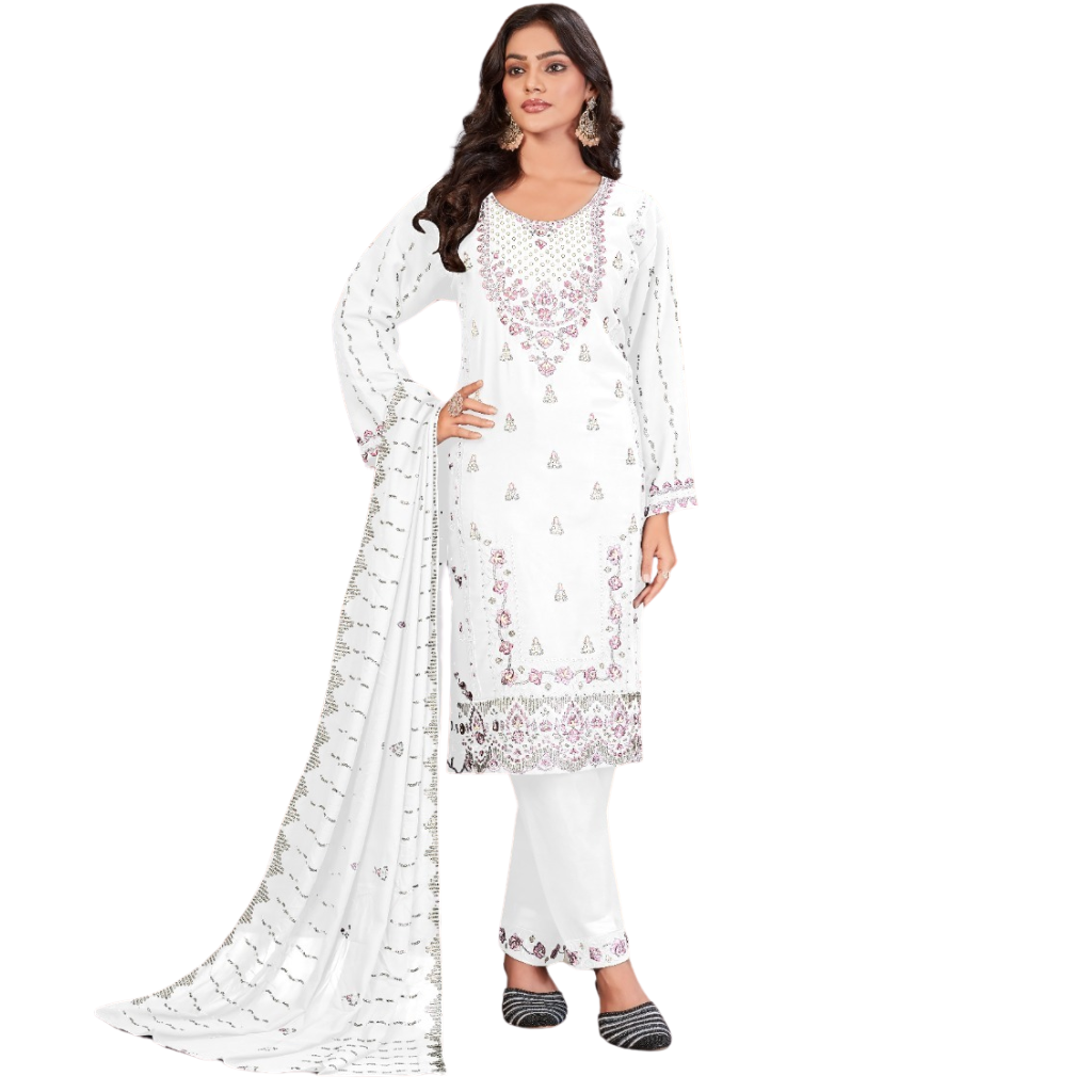 Enhance your ethnic wardrobe with this beautifully crafted embroidered salwar kameez suit set designed for modern women who love traditional elegance. The kurta is made from premium quality Georgette fabric featuring detailed embroidery that creates a rich festive and designer look.